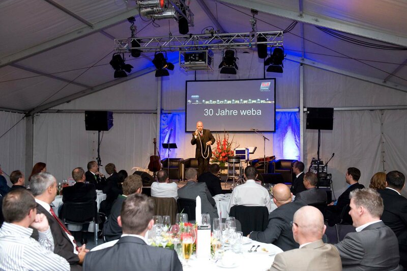 Die Feierlichkeiten begannen mit einem exklusiven VIP-Abend, zu dem zahlreiche Kunden und Partner von weba eingeladen waren. Der Höhepunkt des Abends war eine multimediale Präsentation, die die beeindruckende Unternehmensgeschichte von weba beleuchtete. Podium Interviews mit den Firmengründern Herbert Danzinger und Wolfgang Haidenthaler gaben Einblicke in die Herausforderungen und Erfolge der letzten drei Jahrzehnte. Ein besonderes Highlight des Abends war die Mentalmagie-Show des zweifachen österreichischen Staatsmeisters und internationalen Preisträgers Christian-Christian, der das Publikum mit seiner faszinierenden Performance verzauberte.