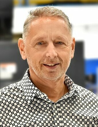 Porträt des Geschäftsführers von weba Werkzeugbau, aufgenommen auf einer Glasstiege. Er steht souverän und selbstbewusst, mit einem leichten Lächeln, was Führungsstärke und Professionalität ausstrahlt. Die moderne Glasstiege verleiht dem Bild eine elegante und zeitgenössische Atmosphäre, die die fortschrittliche Ausrichtung des Unternehmens unterstreicht.